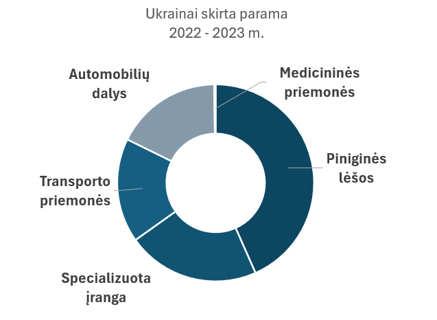 - Piniginės lėšos (32 800 €): Tiesioginė parama patikimoms organizacijoms, įskaitant „Blue / Yellow“, „Ziedot.lv“ ir „Nova Ukraine“.